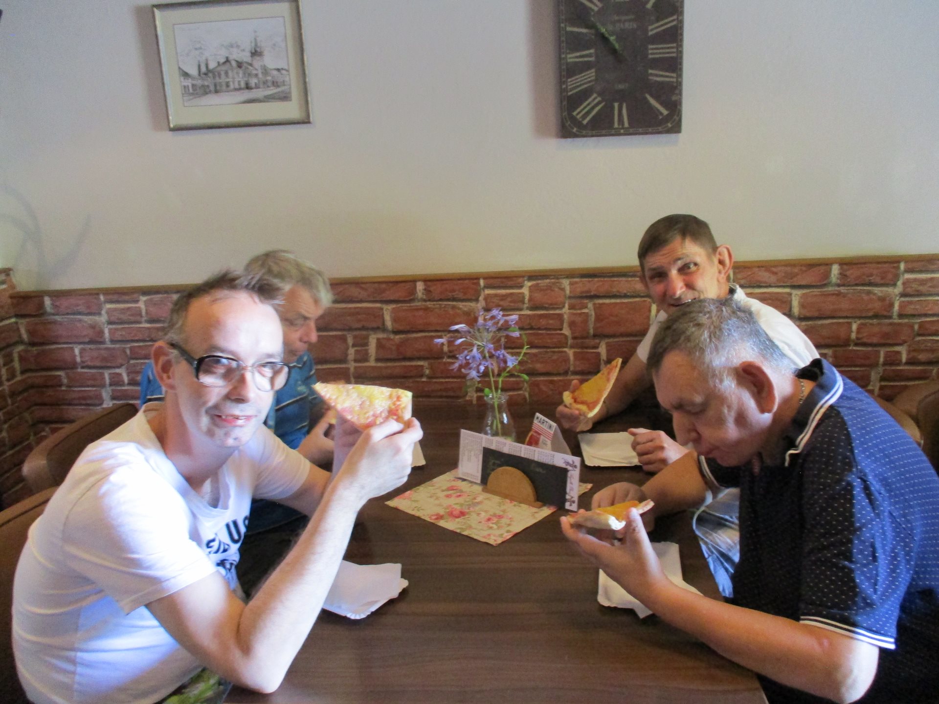 Někteří z nás si zašli do místní kavárny, kde si pochutnali na poháru a klínku pizzy. Občerstvení nás příjemně osvěžilo.